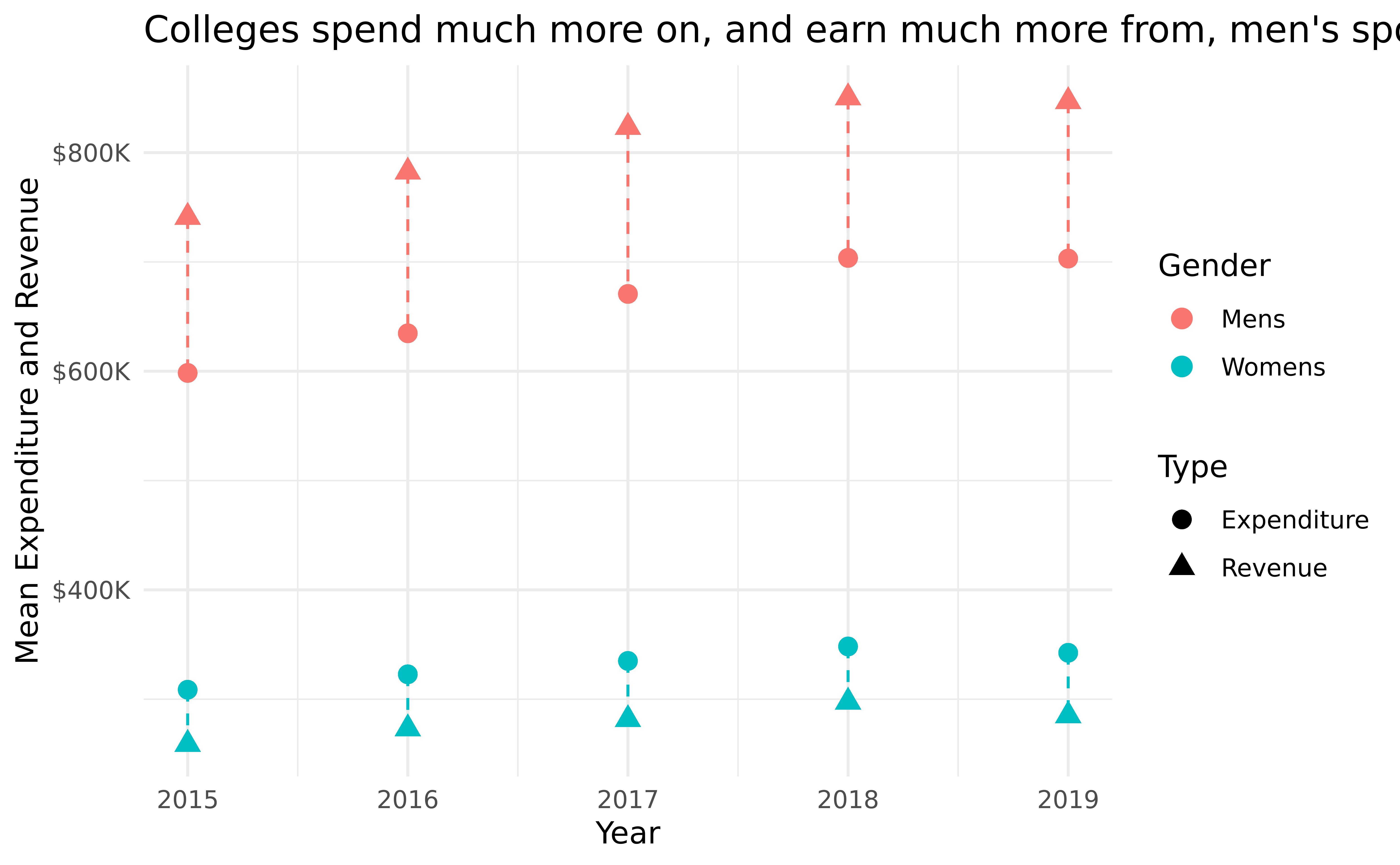 The data includes information on every college sports program from 2015-2019, including expenditure and revenue generated from different sports