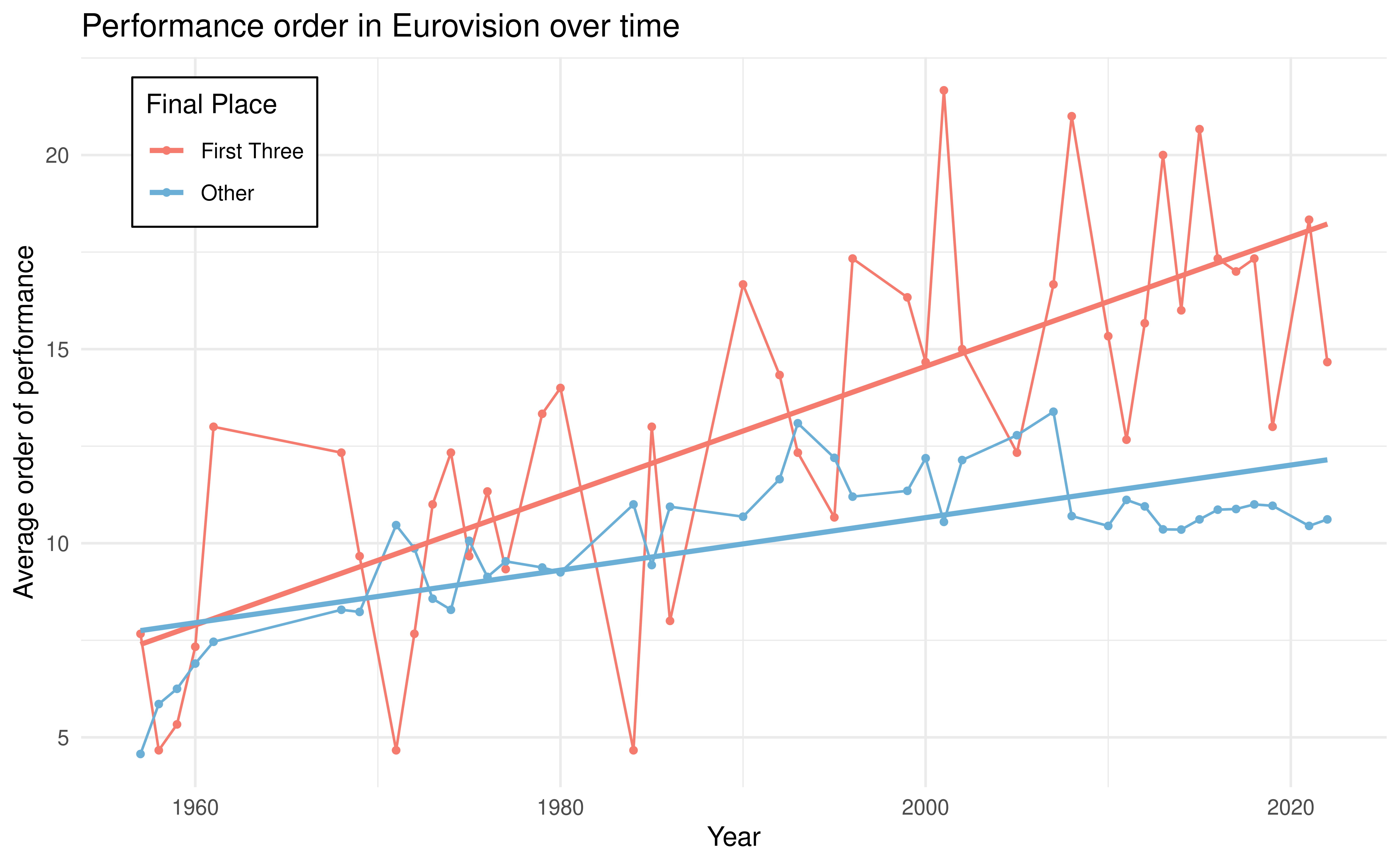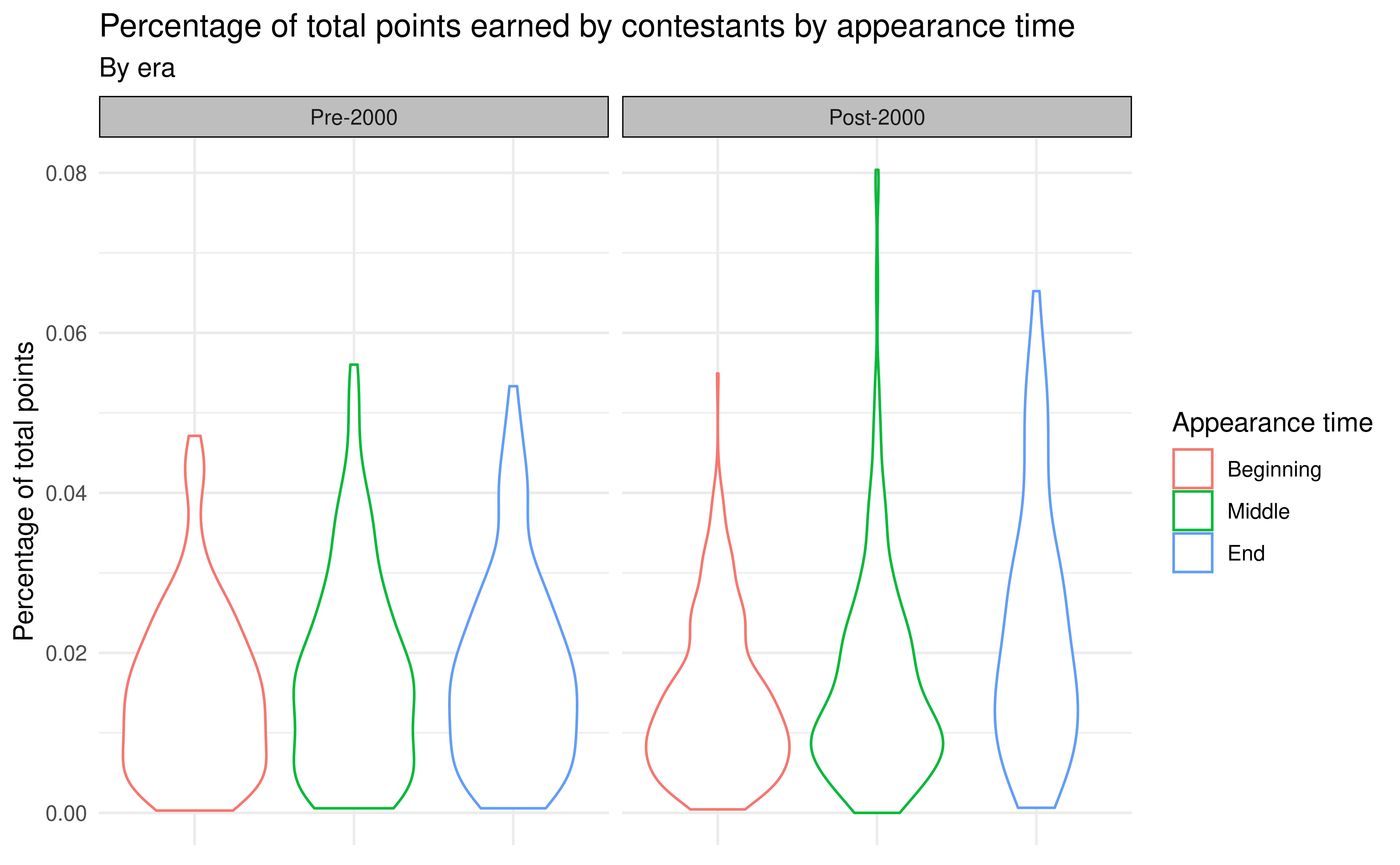 2,005 observations representing all contestants and their songs in the history of Eurovision